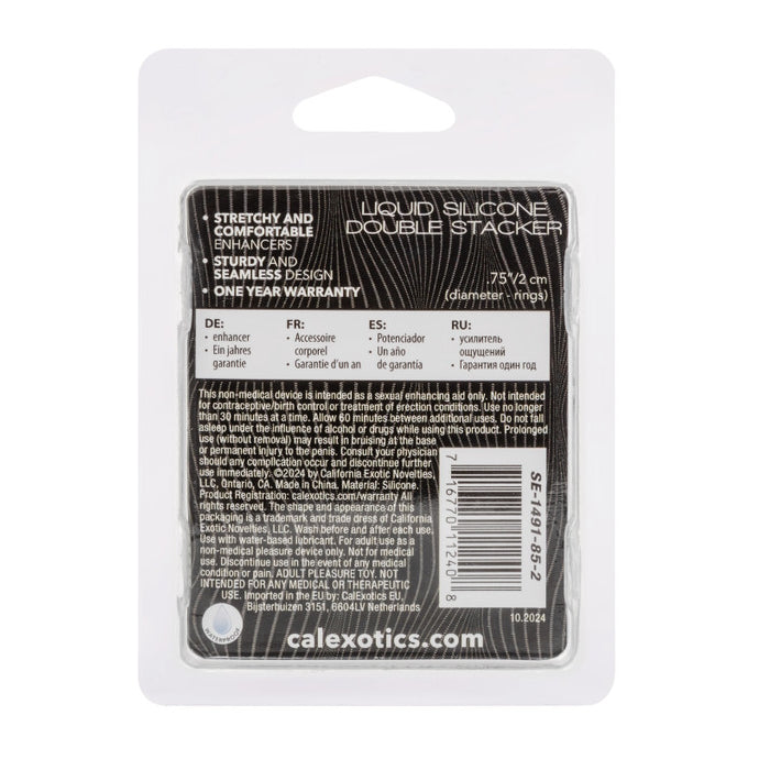 The Alpha Liquid Silicone Double Stacker features a stretchy, comfortable fit that's both sturdy and seamless, ensuring they enhance without interrupting the moment. These enhancers effortlessly increase stamina and intensity, making each experience more exhilarating. Whether used together for maximum effect or individually, they are designed to elevate your enjoyment to new heights.