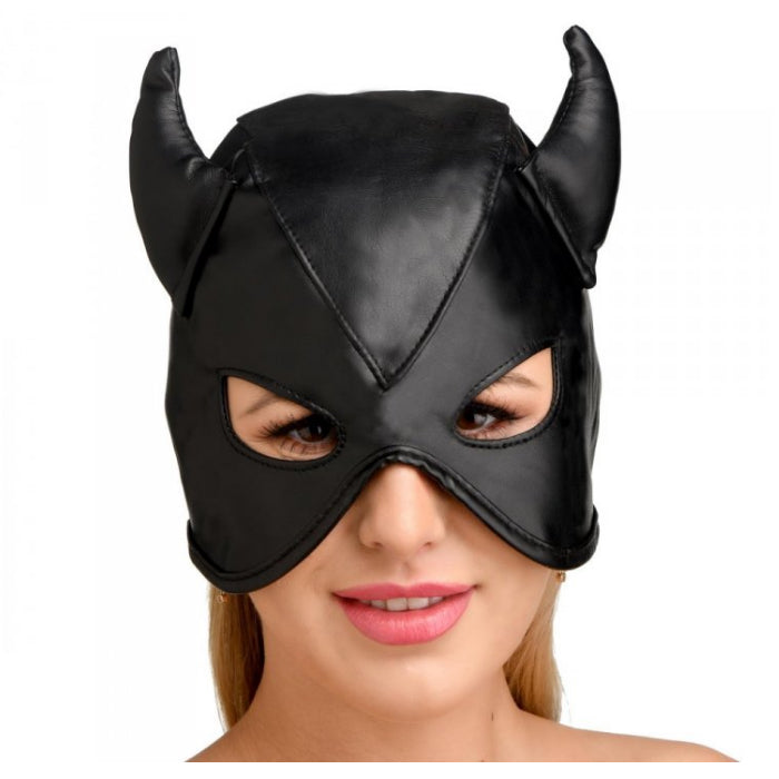 Whether as a costume for a special event or as part of your kinky persona, this Dungeon Demon Bondage Hood is perfect for giving off an aura of mischief and power! Accent your eyes and call attention to your wicked grin as you wear this horned hood. Combine it with leathers, bondage straps, harnesses, or other outfits to really bring it all together and give your partner a little mystery and roleplay!