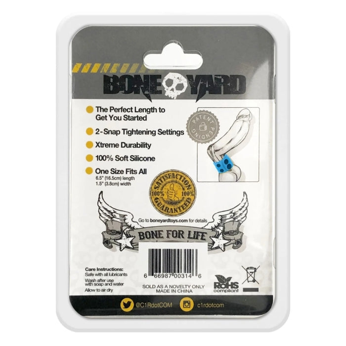These must-have man toys are designed with superior materials and production thus increasing both comfort and lifespan. The powerful and iconic Boneyard-branded design has a sleek soft touch silicone finish and features a superior and durable stretch. The medical grade 100% silicone snap ball stretchers come with 3 snaps on one end and 1 on the other giving the wearer 3 sizing options to find the correct size.