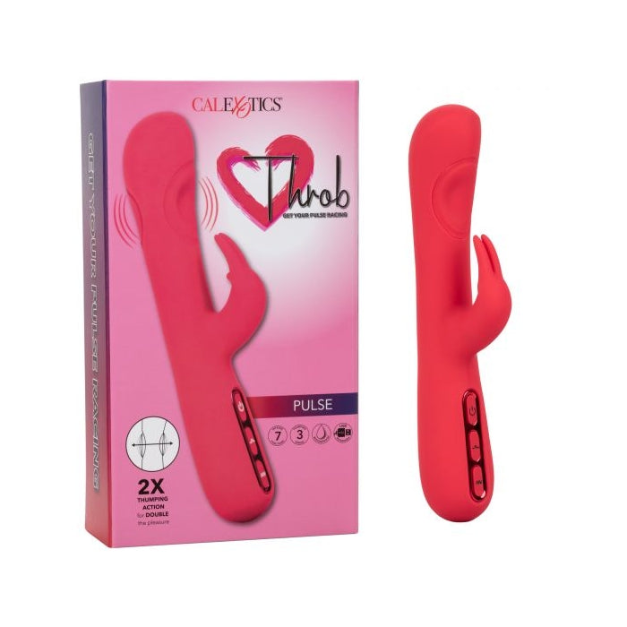 With 2 times the powerful thumping action, the thrilling Throb Pulse is made to get your pulse racing. This powerful rabbit vibrator has 2 uniquely placed thumping pads on both sides of the shaft to deliver 3 speeds of deep, rumbling thumping. A flickering rabbit teaser is made for knee-shaking stimulation as it shimmies to the rhythm of 7 intense functions of vibration. Embrace fully personalized pleasure with the independently controlled 3 speeds of thrilling thumping action and 7 functions of vibration.