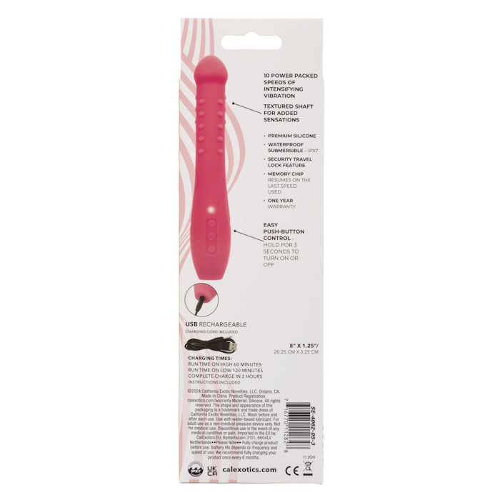 Experience pure exhilaration with the Turbo Glide Sensation, a slender and seductive massager designed to ignite your passions. Its textured shaft adds a tantalizing touch, delivering enhanced sensations with every glide. Perfect for teasing your most sensitive areas or diving deep into unforgettable pleasure.